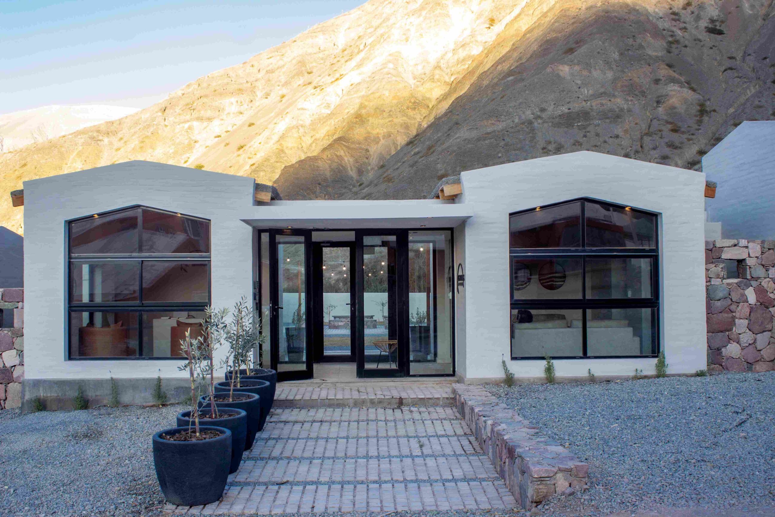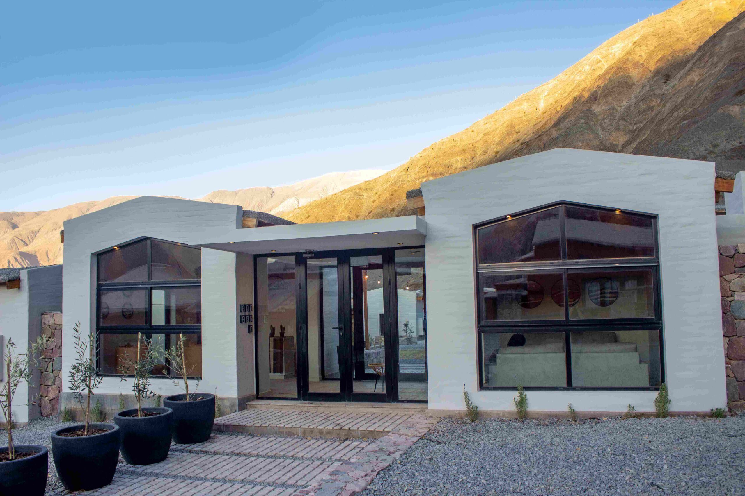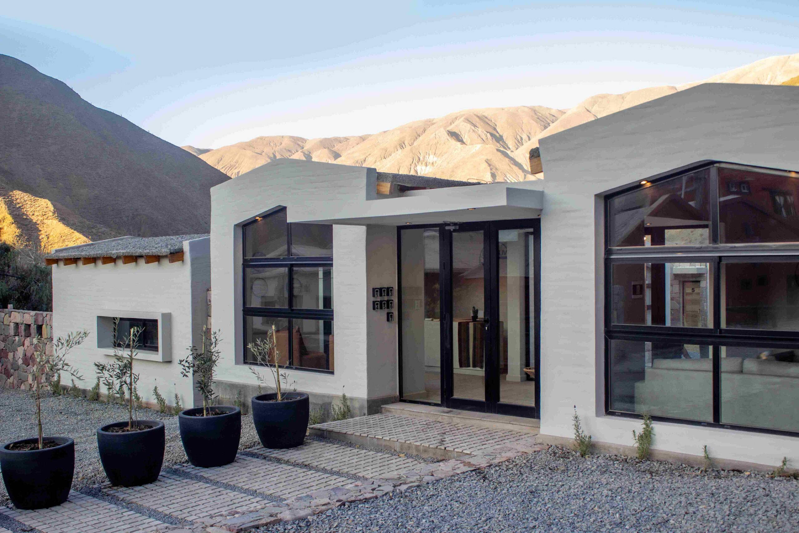 Al pie del camino de Los Colorados, en el corazón de Purmamarca, la arquitectura de Los Olivos destaca por sus líneas simples y limpias que se funden con el paisaje dándole marco a la quebrada en la que está inscripto.