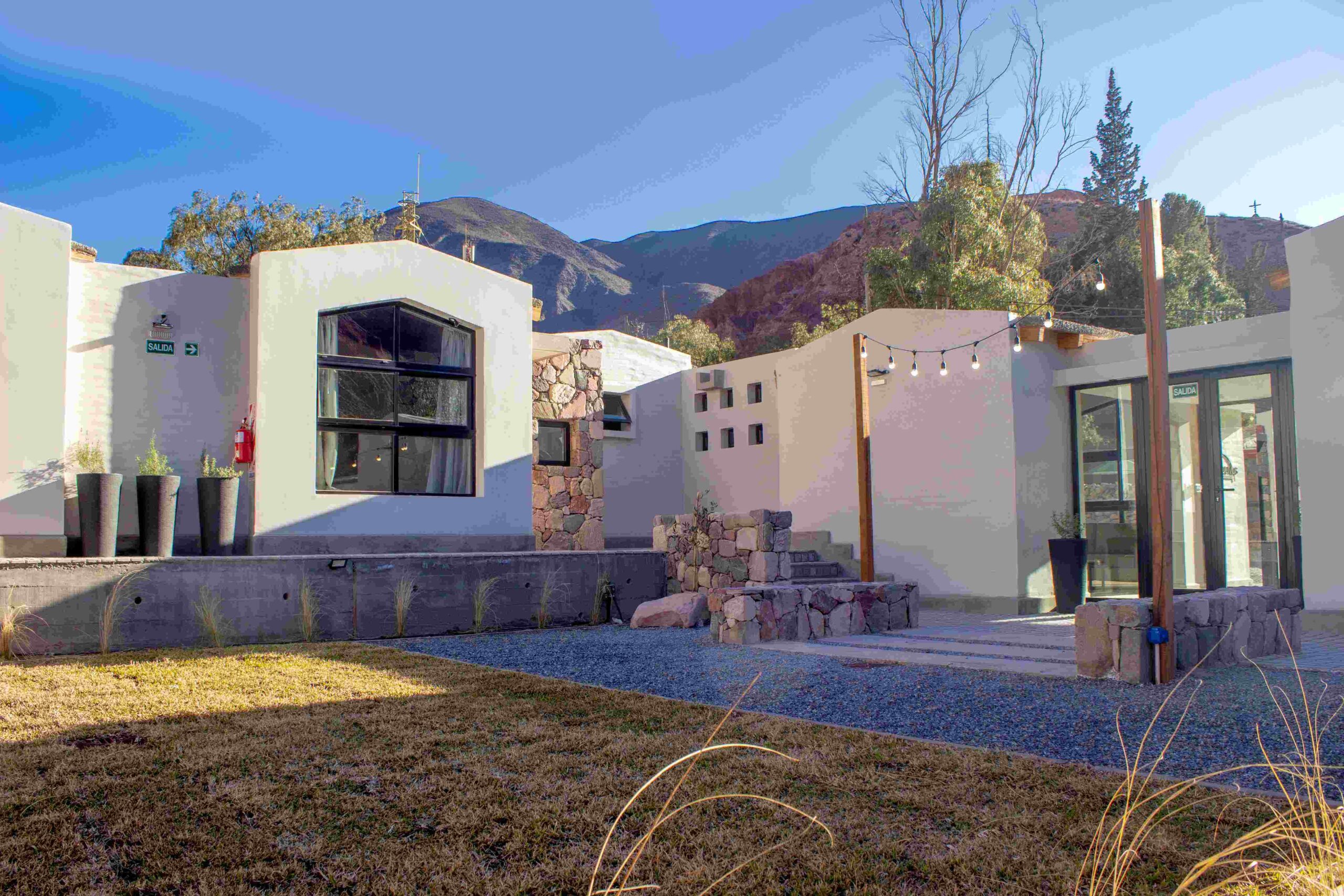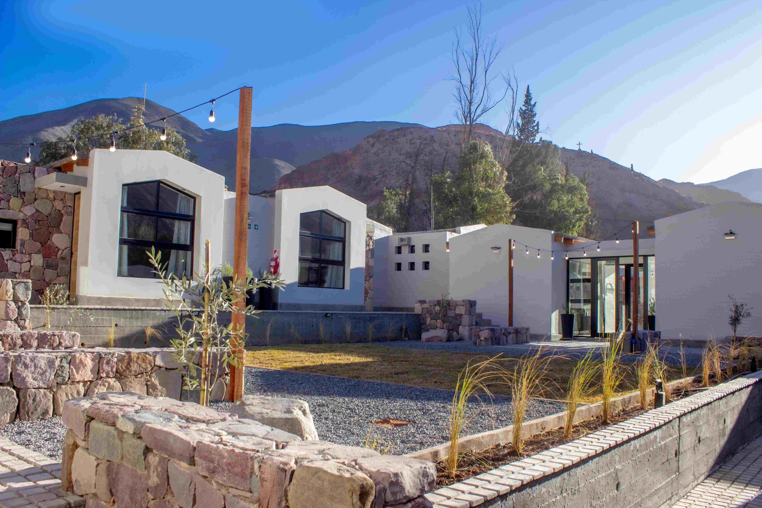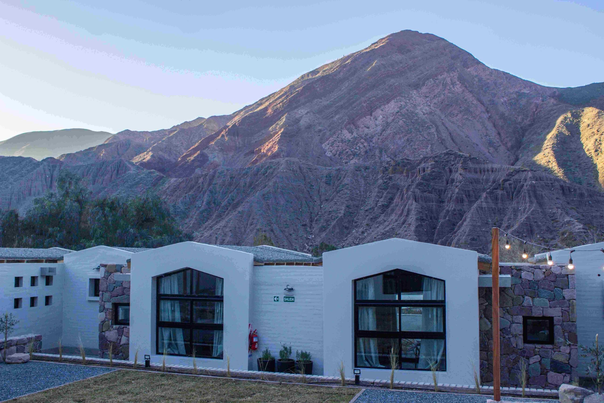 Al pie del camino de Los Colorados, en el corazón de Purmamarca, la arquitectura de Los Olivos destaca por sus líneas simples y limpias que se funden con el paisaje dándole marco a la quebrada en la que está inscripto.